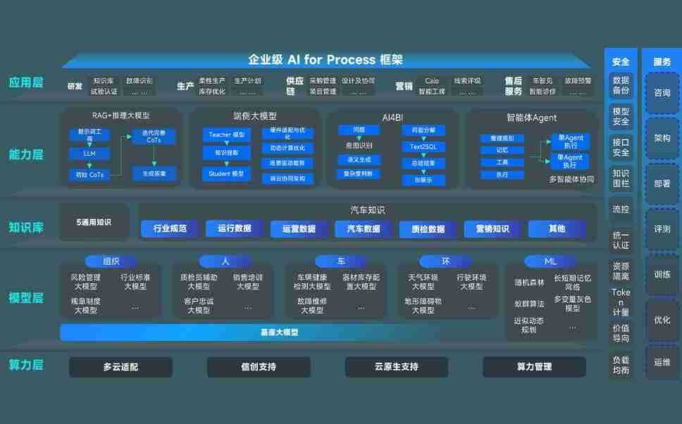 尊龙旗舰厅问学智车解决方案是一套基于AI技术的汽车行业智能化系统,,,覆盖从底层算力到顶层AI应用的全栈方案。。。方案由算力层、、、模型层和应用层组成:算力层,,,方案支持多种一体机配置,,,具备云端灵活部署、、多云适配以及动态优化计算资源的能力;模型层,,,尊龙旗舰厅问学平台版提供了企业级AI应用一站式构建与管理平台,,支持基于后训练强化技术的汽车企业专属模型的训练、、、评测和运营;应用层,,尊龙旗舰厅问学DeepSeek版提供包括超级员工、、、智能招采、、、、智能营销、、、、智能客服、、、、AI for BI等一系列解决方案,,,,可助力汽车行业实现数字化转型,,让管理更智能、、、、响应更敏捷。。。